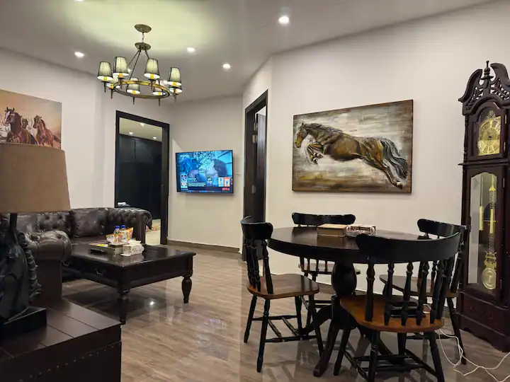Experience serene luxury in this peaceful 2-bedroom apartment in Bahria Town Phase 7, offering a perfect blend of comfort and convenience. Located in a prime spot with famous restaurants just steps away on the ground floor and in the vicinity, you’ll have a wide variety of dining options at nearly famous food street. The apartment is thoughtfully designed, featuring high-end furnishings, all modern amenities, and a fully equipped kitchen with a stunning view, ideal for relaxation.